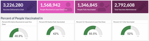 The Utah Dept. of Health reports that in the last four weeks those who are unvaccinated are at five times greater risk of dying from COVID than vaccinated people and at 19 times greater risk of dying from COVID than those who are boosted.