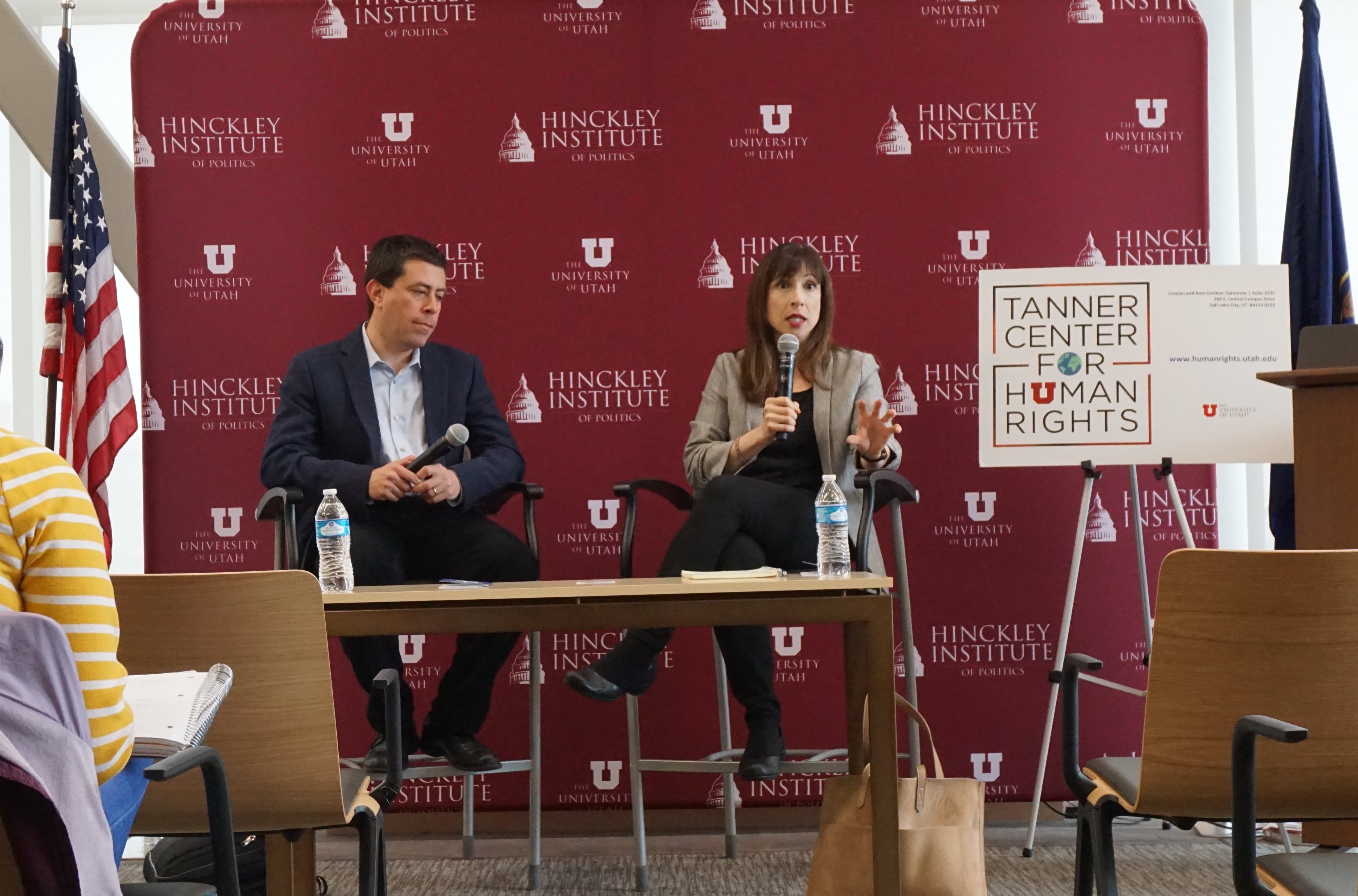 Speaking on the panel is Andrea Prasow, deputy Washington Director at Human Rights Watch, an organization that investigates and reports on human rights abuses around the globe; and Scott Paul who is a Humanitarian Policy Lead for Oxfam, a global anti-poverty organization.